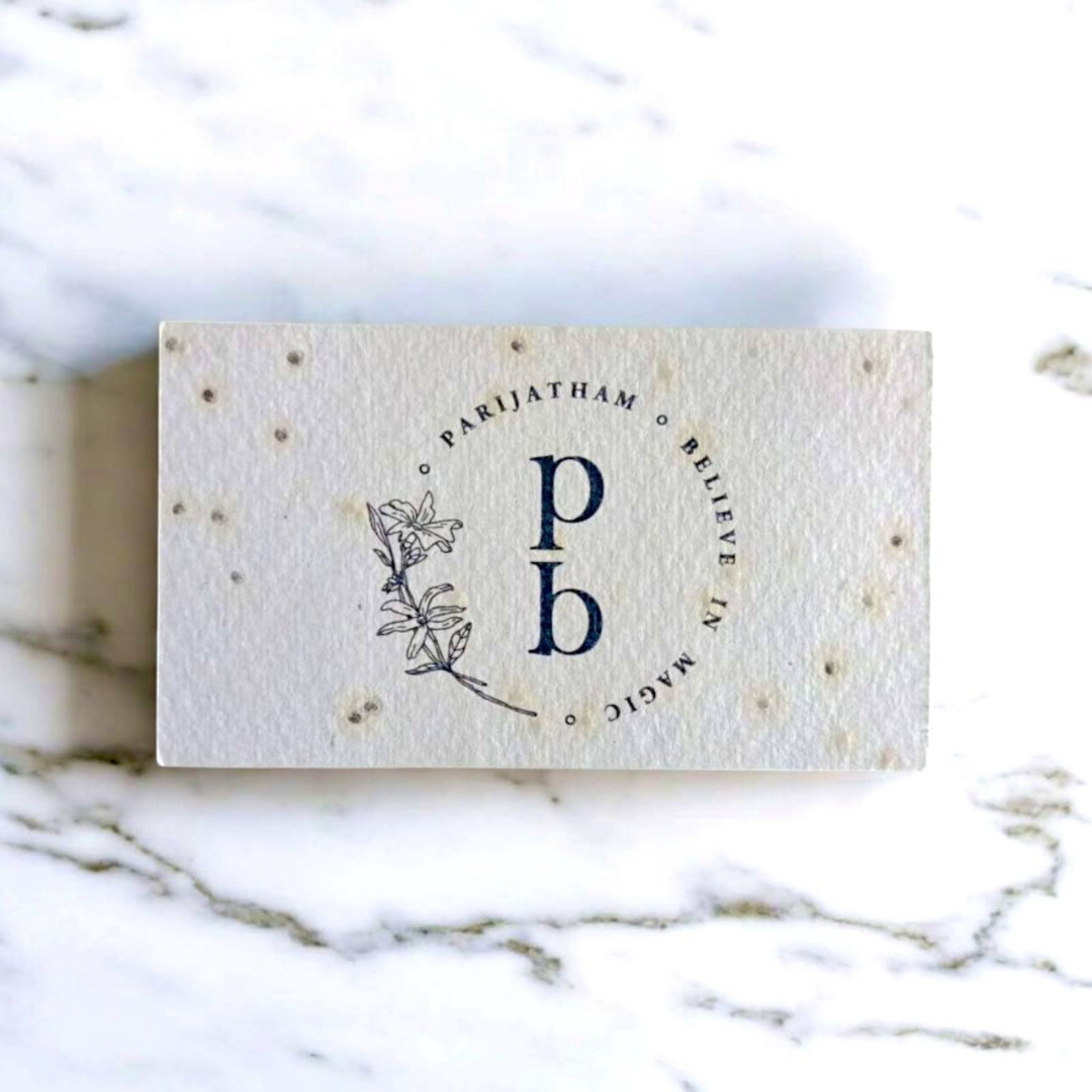 Make a lasting impression with our Seed Paper Visiting Cards, crafted from premium handmade seed paper using 100% garment waste cotton. Each card is biodegradable, recyclable, and plantable — once discarded, it grows into a beautiful plant!
